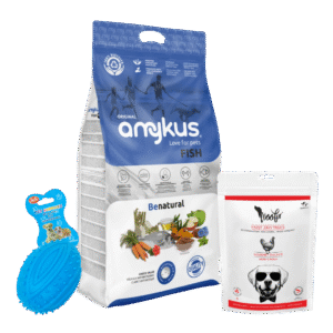 Amykus briketi z ribo 3 kg, Woofur gurmanski piščančji jerky in zabavna igrača – p...