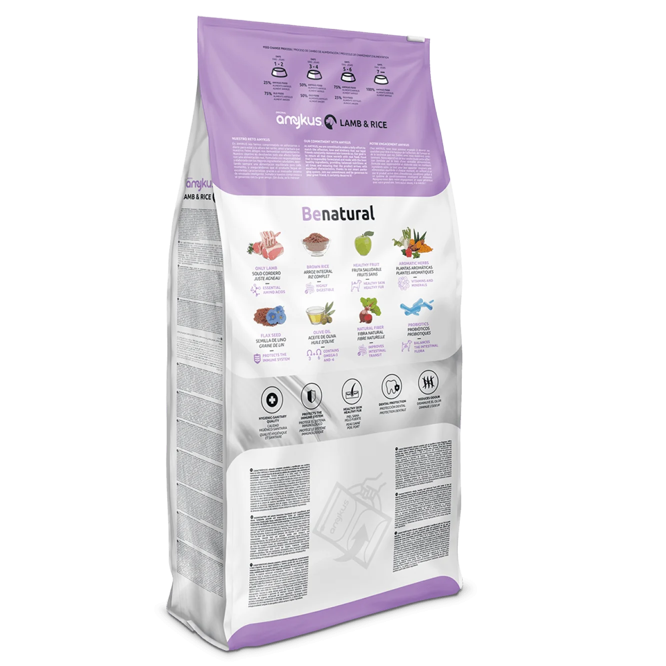 Amykus Original Jagnjetina in riž je hrana brez umetnih barvil, konzervansov ali ojačevalcev okusa. Z naravnimi sestavinami, kot so laneno seme, olivno olje, morska alga in zelišča (kot sta kamilica in timijan), podpira splošno vitalnost psa in hkrati ponuja odličen okus, ki ga psi obožujejo. Njena skrbno razvita formula zagotavlja, da vsaka skleda ni le hranljiva, ampak tudi izjemno okusna, kar prispeva k zadovoljstvu in dobremu počutju vašega psa.