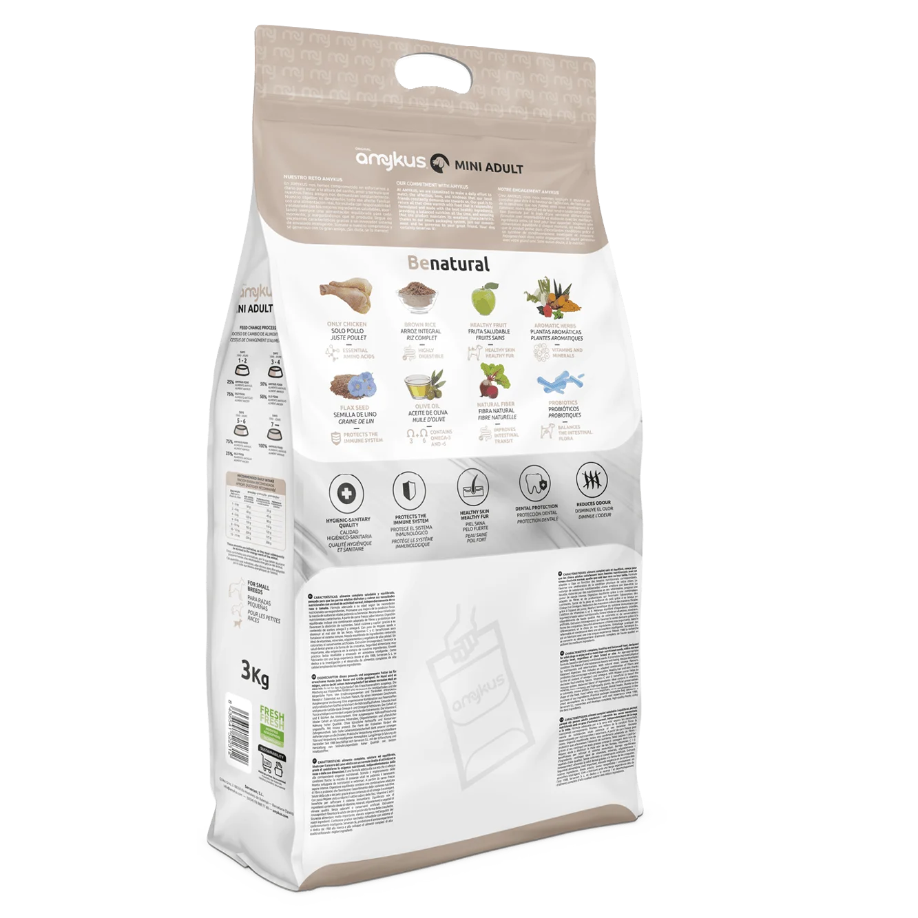 Amykus Original Mini Adult je odlična izbira za lastnike, ki želijo svojim malim psom zagotoviti uravnoteženo prehrano, zasnovano po njihovih dejanskih potrebah. Zaradi živalskih beljakovin in funkcionalnih sestavin bo vaš pes vsak dan užival hranilno bogat obrok, ki podpira njegovo zdravje, vitalnost in dobro počutje.