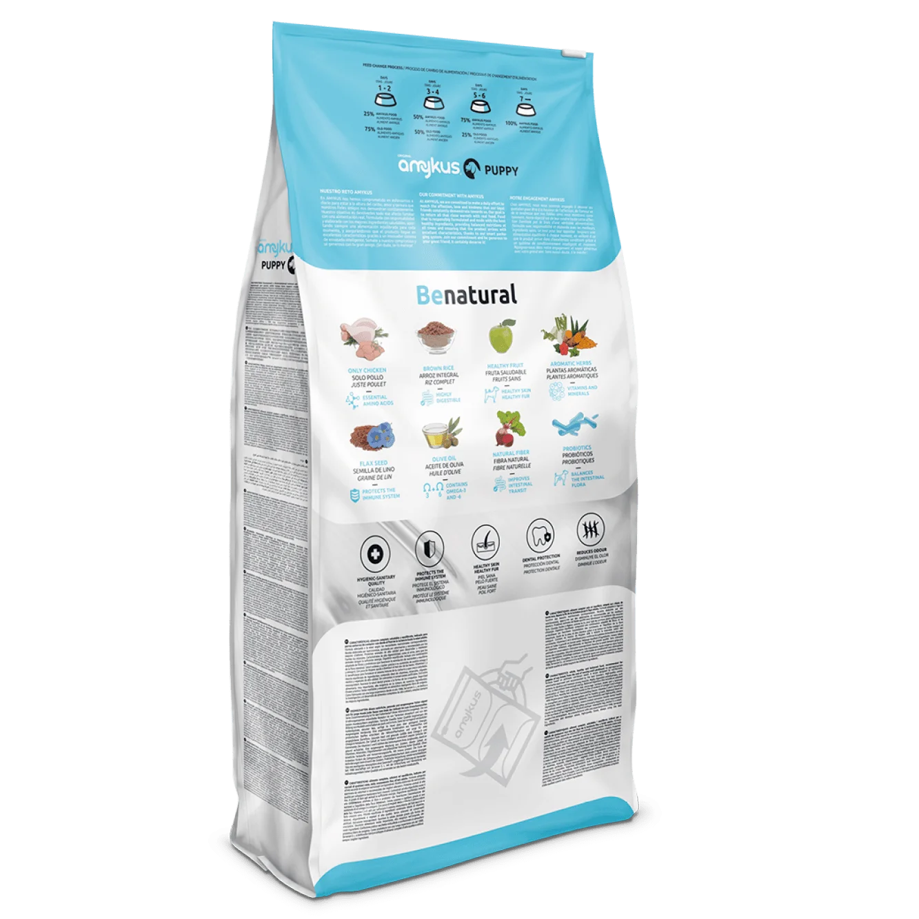 Amykus Original Puppy združuje naravne sestavine in premišljeno sestavljeno formulo, ki mladičem in doječim psicam nudi vse, kar potrebujejo za močno telo, zdravo rast, sijočo dlako in aktivno življenje. To je hranilno bogata, okusna in popolnoma uravnotežena hrana, ki bo vašemu psu pomagala pri zdravem in sr