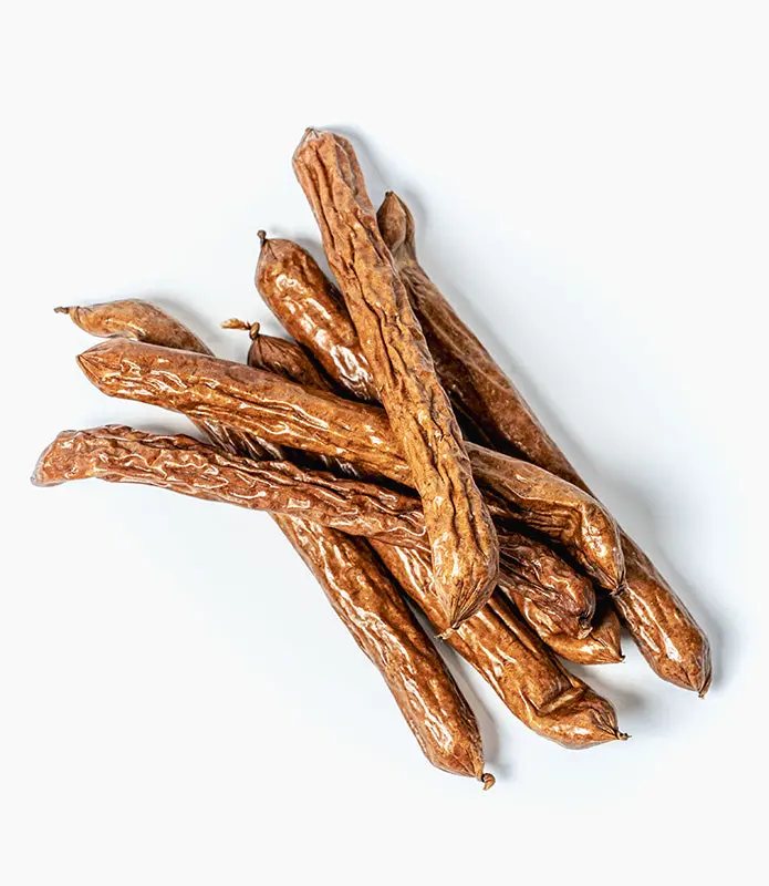 Recepture so zasnovane brez žit ter brez umetnih barvil, arom in konzervansov. To je pomembno za lastnike, ki želijo izbrati čim bolj naravne priboljške in se izogniti nepotrebnim dodatkom. Intenziven vonj in okus mesa povečata motivacijo psa, zato so klobasice dobra izbira tudi pri bolj izbirčnih psih.