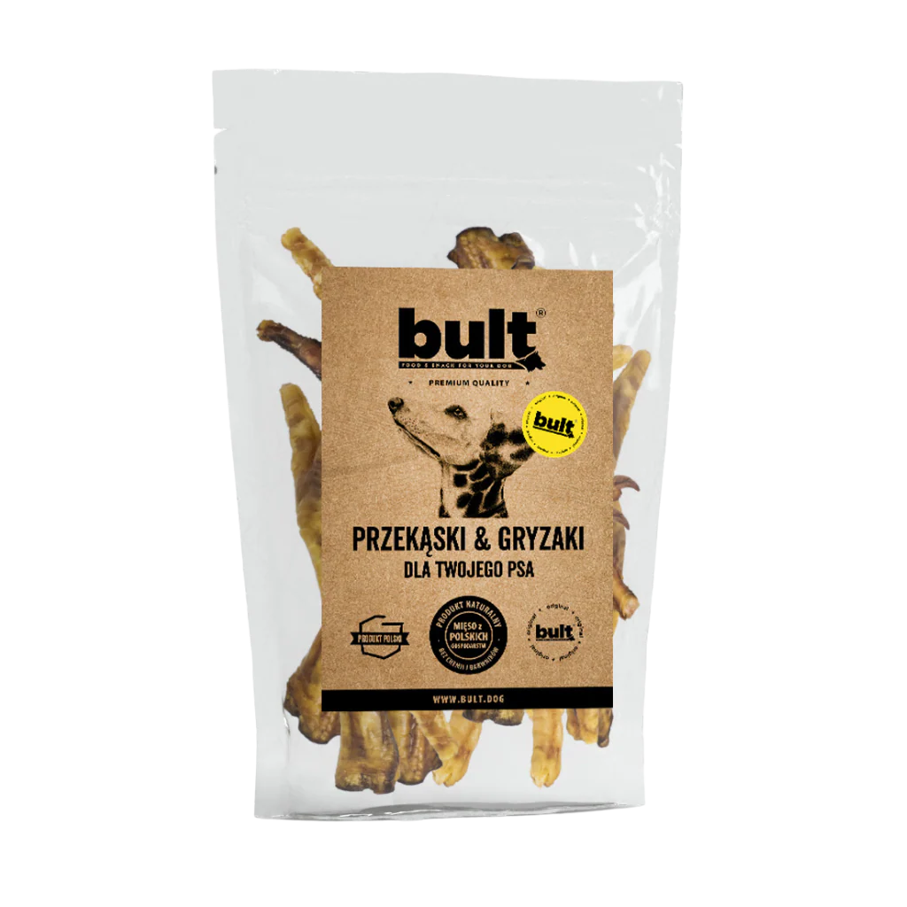 BULT puranje tačke so 100 % naravno sušen priboljšek za pse, ki spodbuja dolgotrajno žvečenje in podpira ustno higieno. Hrustljava poslastica za pse vseh velikosti in starosti.