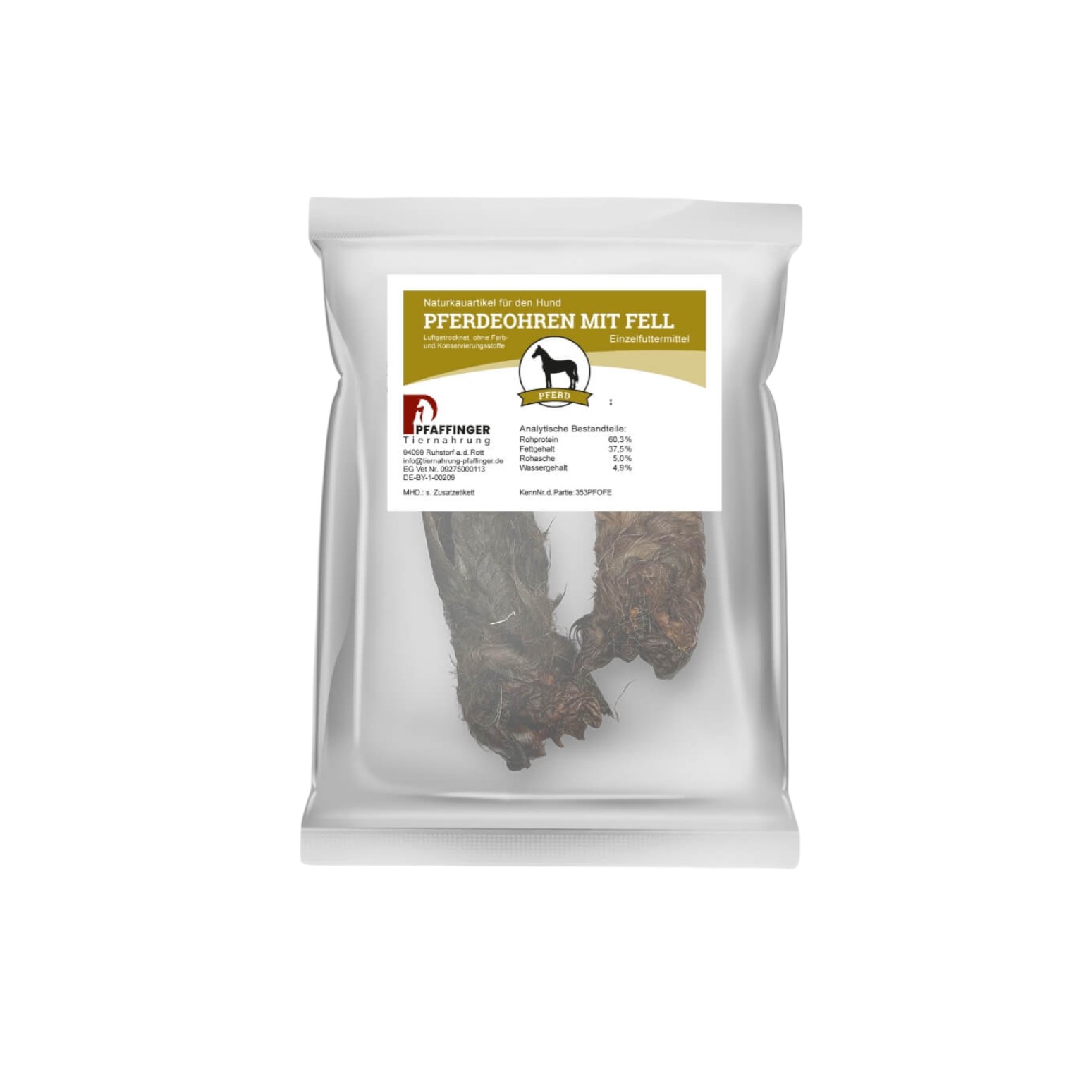 Konjska ušesa z dlako so naraven priboljšek za pse, namenjen dolgotrajnemu žvečenju in naravni zaposlitvi psa. Gre za monoproteinski izdelek iz konja, ki je primeren tudi za pse z občutljivo prebavo ali prehranskimi intolerancami.