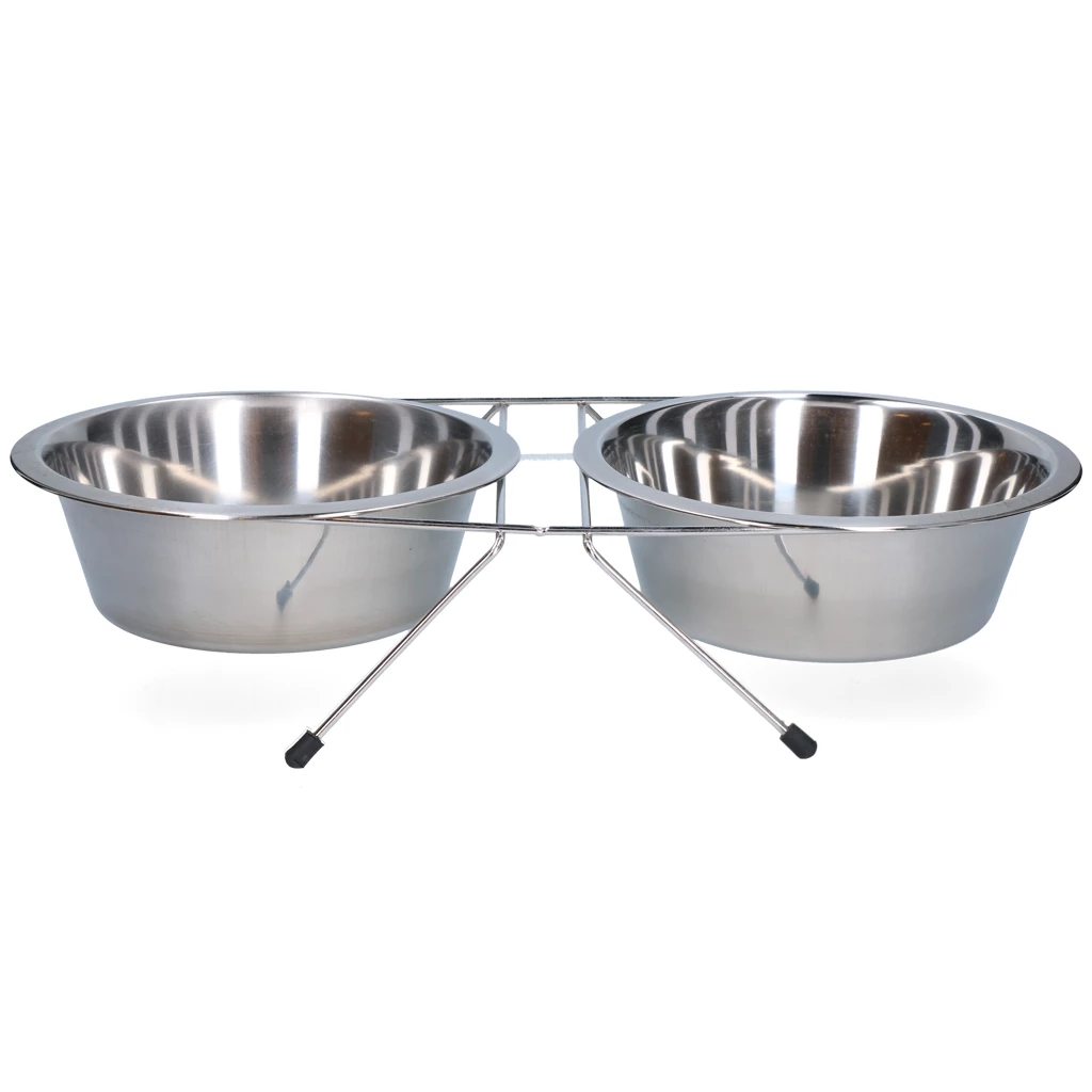 Posoda iz nerjavečega jekla s stojalom je trpežna, higienska in enostavna za čiščenje. Primerna je za vse pasme psov, saj je odporna na rjo in praske ter preprečuje prelivanje.
